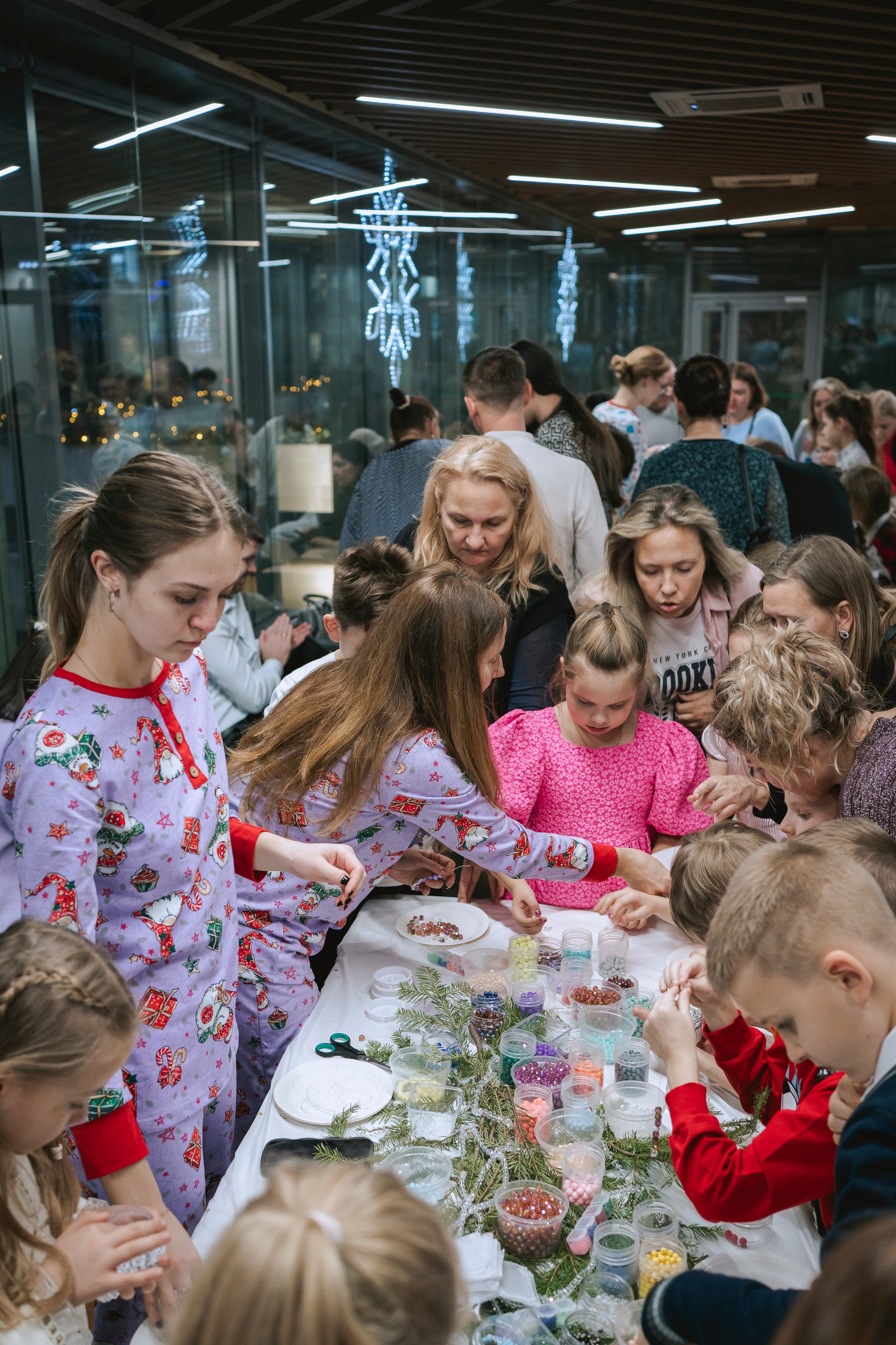 Дважды за день: в 14.00 и в 18.00 более тысячи юных любителей Сновидении собрались для того, что бы принять участие в ярком, красивом и веселом действе с волшебником Баюбаем и спасти Новый Год. Все ребята могли принять участие в одном из мастер-классов (роспись масок для сна, браслеты из бисера и бусинок, роспись гипсовых тематических фигур и изготовление закладок для книг) или обратиться к художникам для аквагрима.